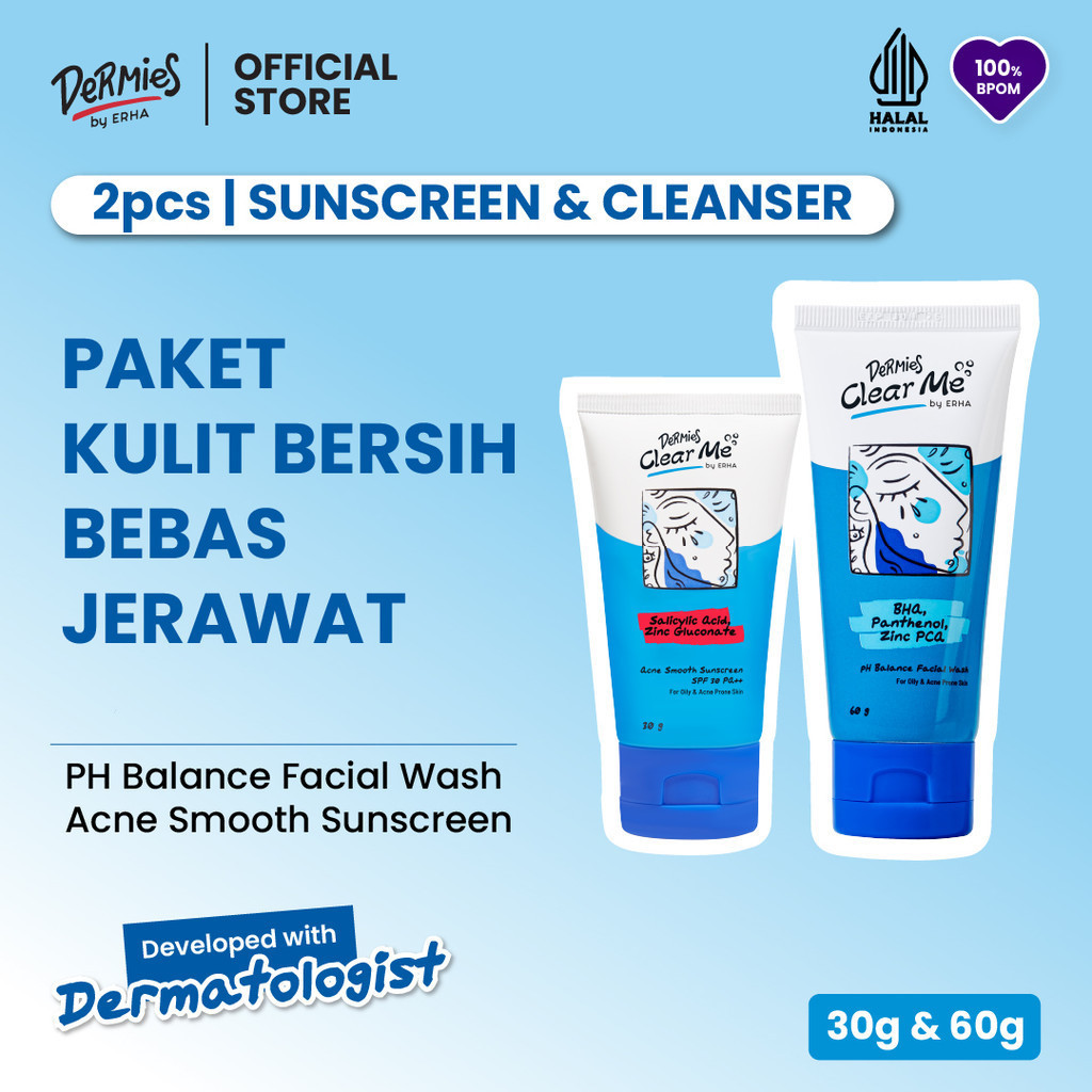 DERMIES Clear Me by ERHA Paket Kulit Wajah Bersih Bebas Jerawat & Minyak - Sunscreen & Facial Wash