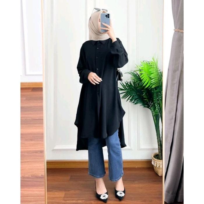 Amy.Id | Tunik Kanaya Cringkle Airflow/ Kemeja Tunik Wanita Airflow Crinkle Kancing Nyaman - Tunik Hitam, Xl Ld110