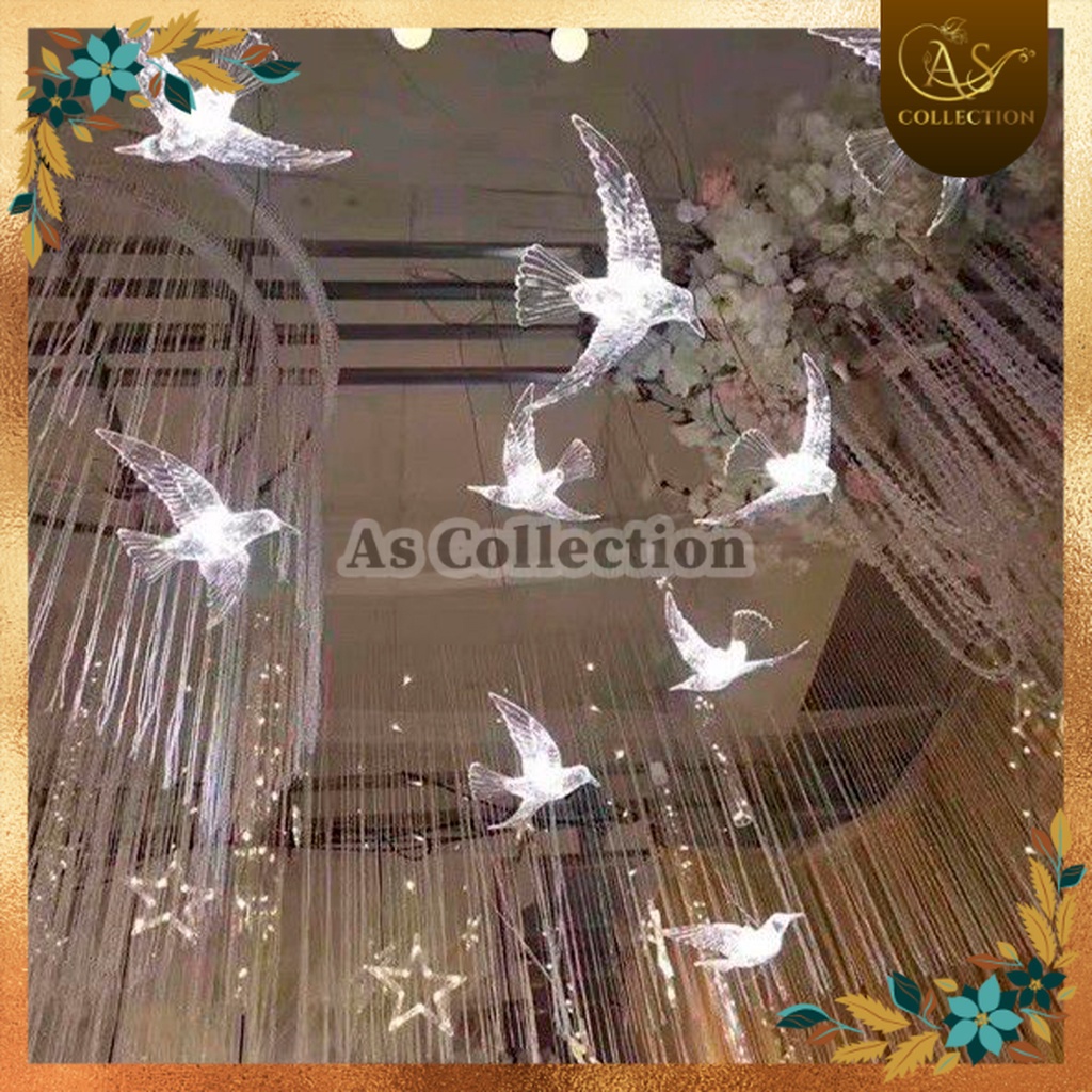 Lampu Dekorasi Wedding Burung Akrilik Burung Plastik Dekorasi Hias Gantung LED Dekorasi Wedding Acrylic Pelaminan