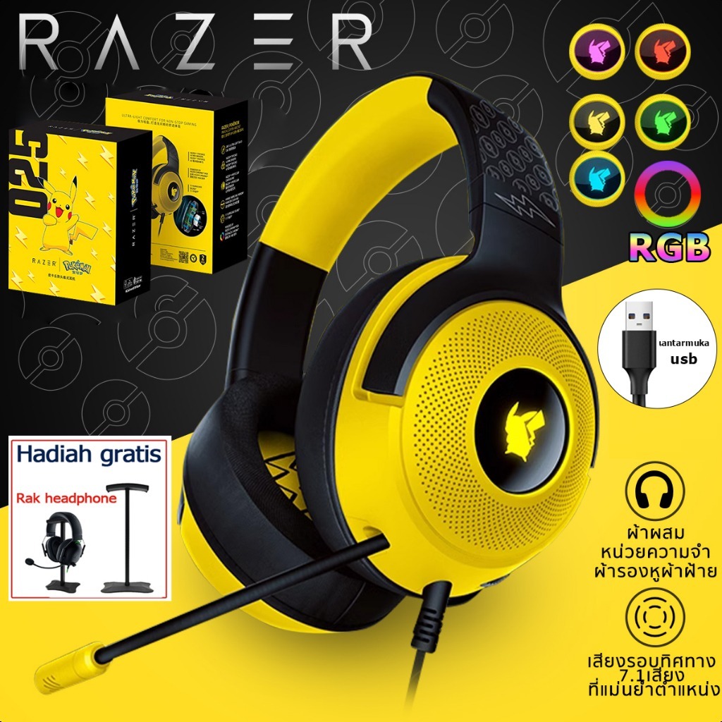 Razer Kraken V3X Pokemon - Headset Gaming Asli untuk Profesional Esports, Kompatibel dengan PC/Laptop/Mobile