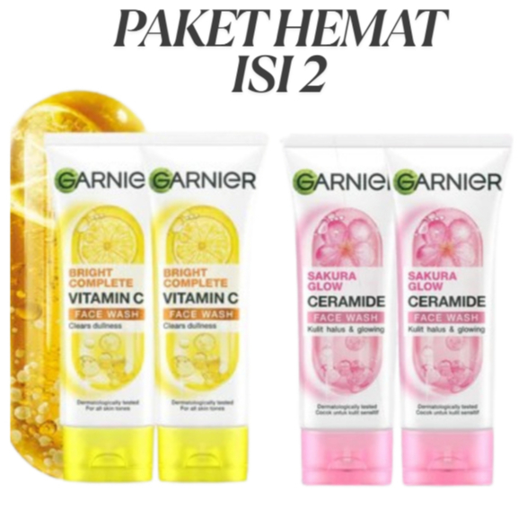 BELI ( PAKET ISI 2) LEBIH MURAH GARNIER FACIAL FOAM BRIGHTCOMPLETE VIT C // SAKURA GLOW WHITE 100ML