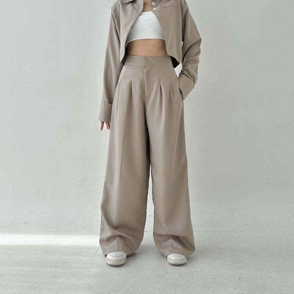 Abby Pants - Celana Panjang Wanita Wide Highwaist Pants Basic Korean Long Trousers Murah Posha