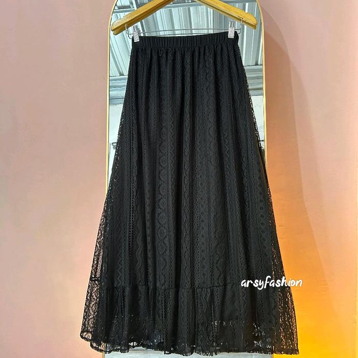 Rok Rempel Brukat - Skirt Lace Maxi Wanita Dewasa Muslim Bawahan Motif Bunga Panjang - Moca