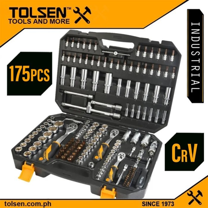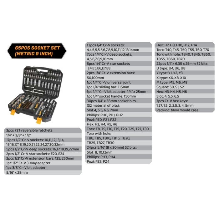 TOLSEN Kunci Shock Set Mata Sok 1/4" + 3/8" + 1/2" Metric & Inch Tool Kit 65Pcs Motor Mobil - 15146