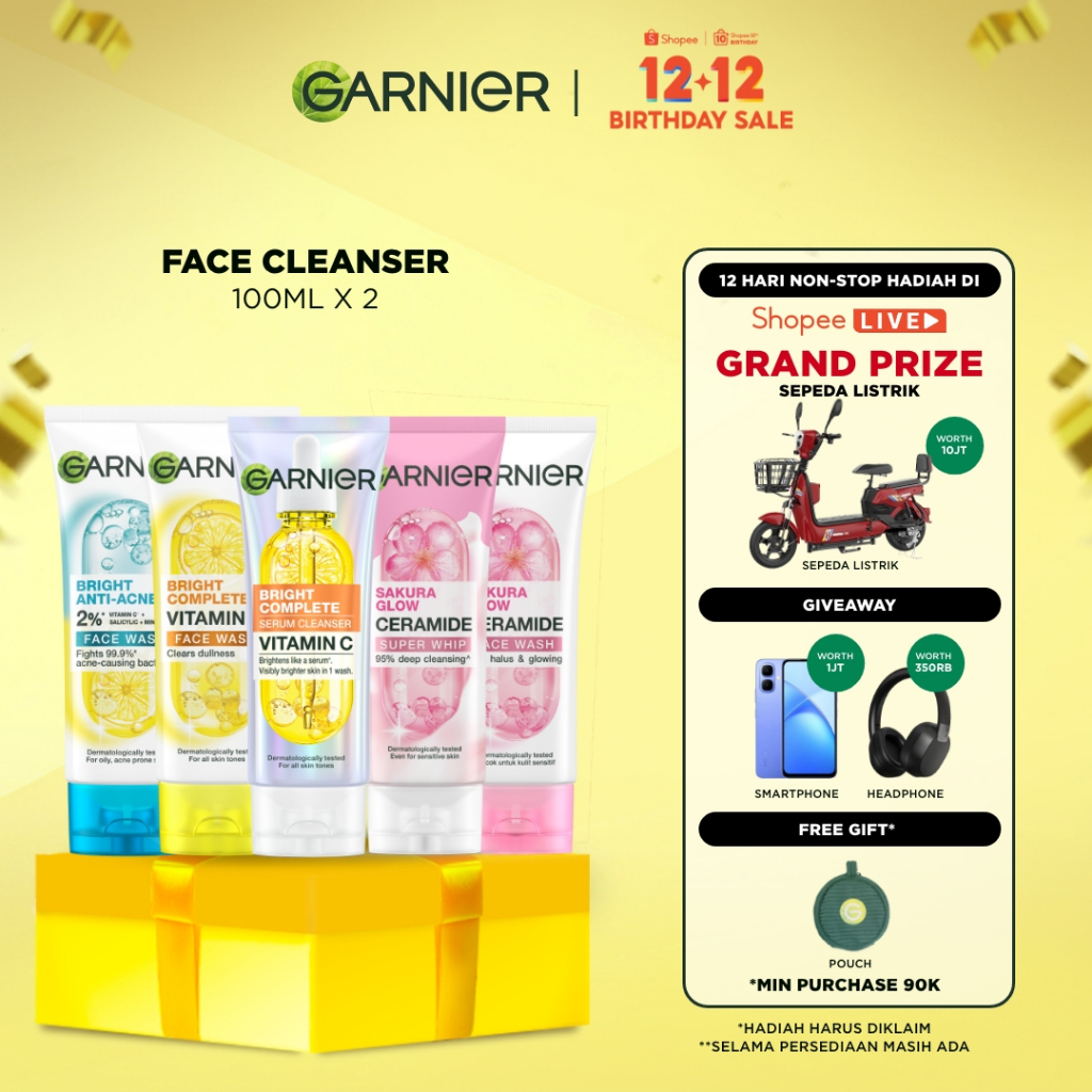 [PAKET HEMAT ISI 2] GARNIER Facial Wash ALL VARIANT 100ML Vitamin C Ceramide Ani Acne Skincare Pembersih Wajah sabun cuc
