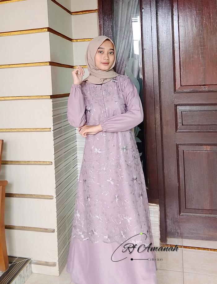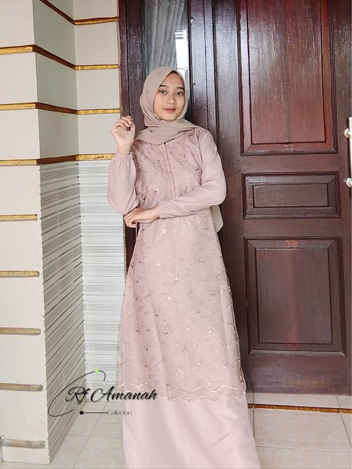 Gamis Brokat Tile Mutiara Pesta Elegan Gaun Kain Mewah Kondangan Muslim - Pink, M