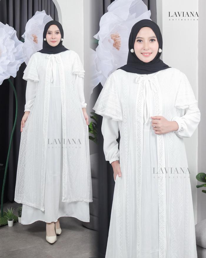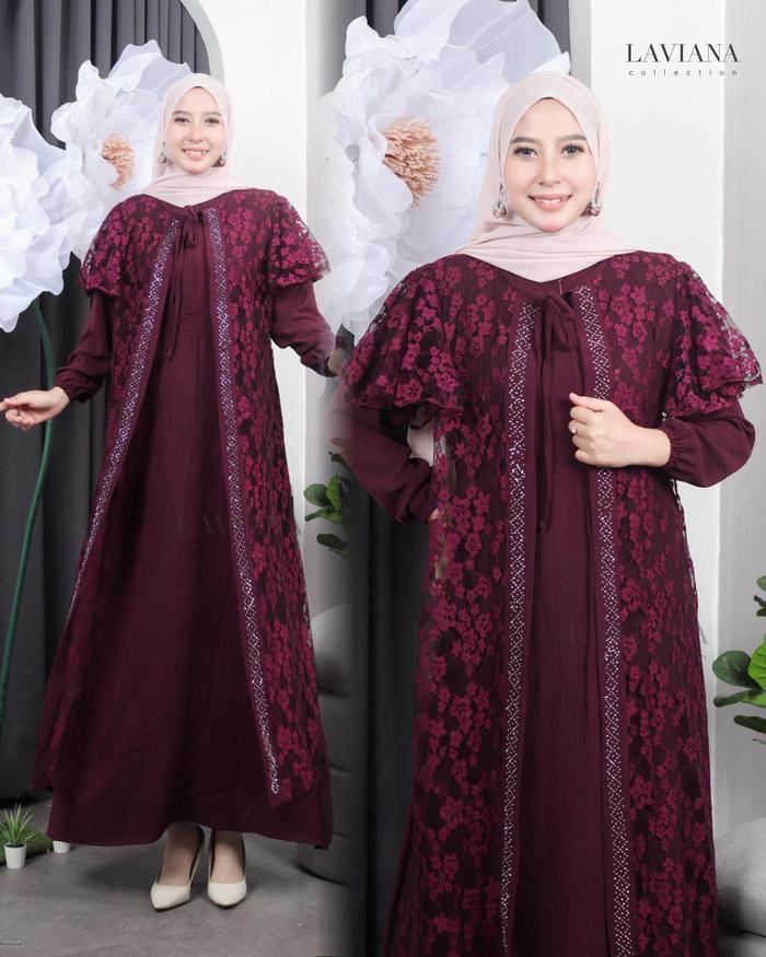 Laviana Collection - Baju Gamis Dress Wanita Muslim Model Alea Dress Bahan Kain Crinkle Airflow Premium Mix Brokat Full