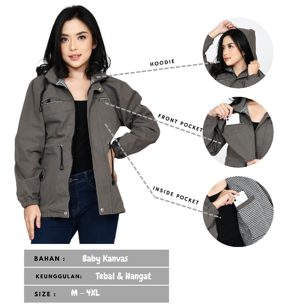 Armous Jacket Parka Wanita Tebal Anti Dingin Bahan Baby Canvas Premium Jaket All Size Semua Ukuran