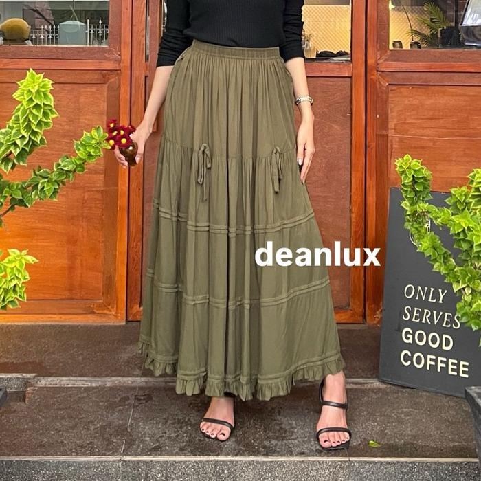 Shena Skirt || Rok Korea || Rok Maxi || Rok Flowy Premium Tebal - L - 85Cm, Broken White