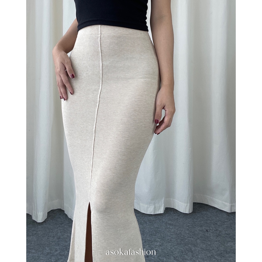 Asoka Sohee Skirt 3137 - Bawahan Wanita Rok Panjang - Women Skirt Knit Slit A-Line Midi