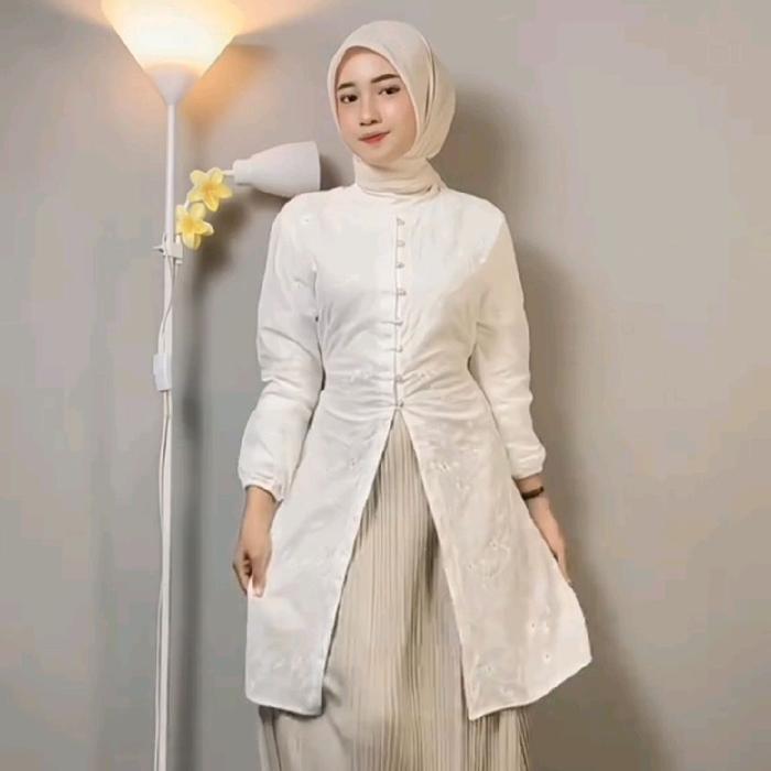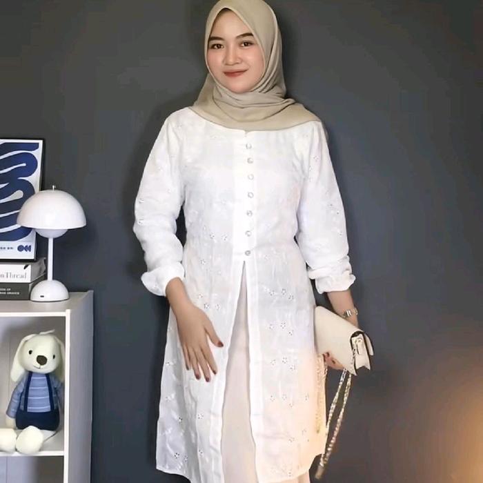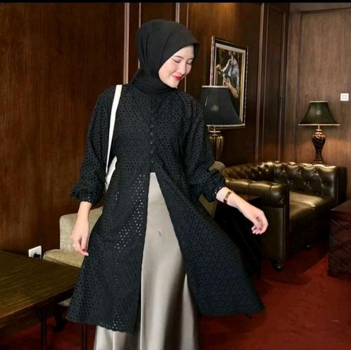 Chea Tunik Katun Bolong Outer Cotton Bordir/ Tunik Kondangan/ Tunik Wisida/ Tunik Lebaran Kain Muslim Wanita Atasan - Ch