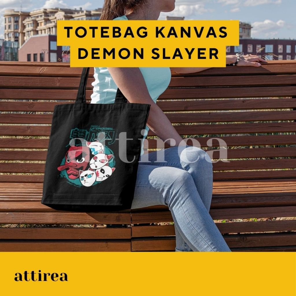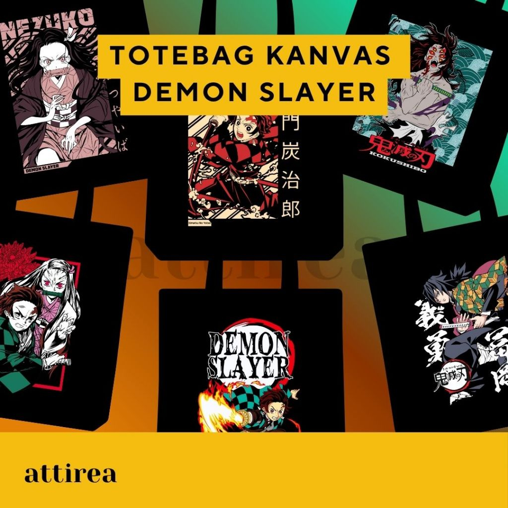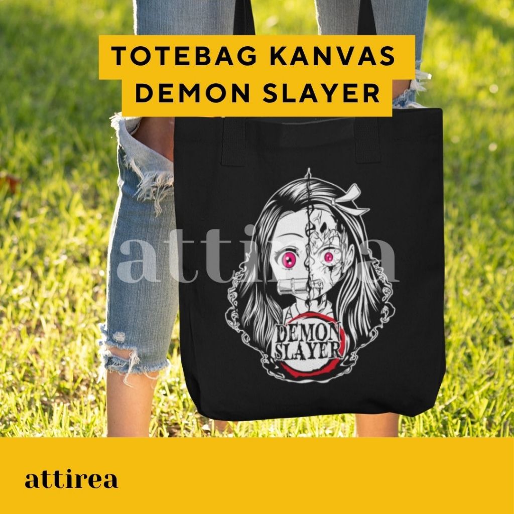 Tote Bag Kanvas Demon Slayer | Resleting, Bahan Tebal