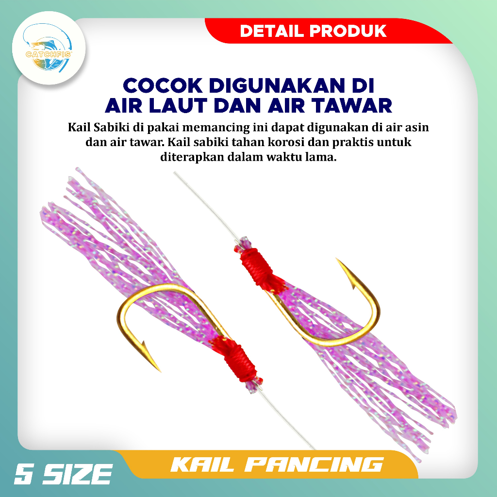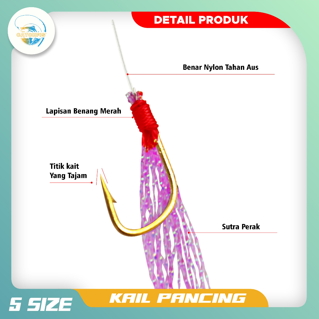 Catchfis - Kotrekan Kail Umpan Pancing Sabiki Kail Umpan Gantung Sutra Perak Kail Jig Benang Pesca Bulu Baja Karbon Ting