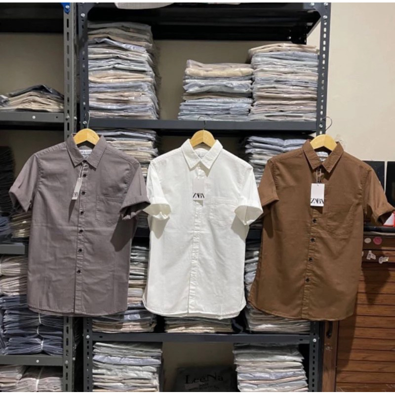 kemeja pria wanita zara man kerah lengan pendek / kemeja kerah polos pria lengan pendek premium / keneja Zara pria premi