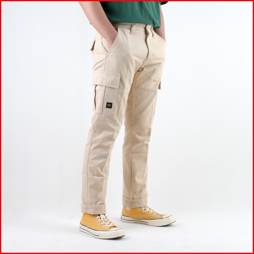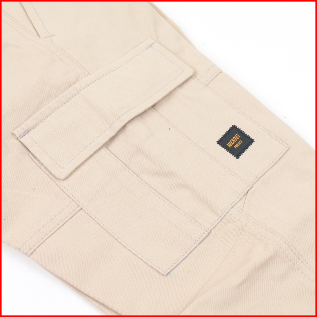 Mickout Slava Cargo Pants - Celana Panjang Pria Rigid Cotton Straight Fit - Cream