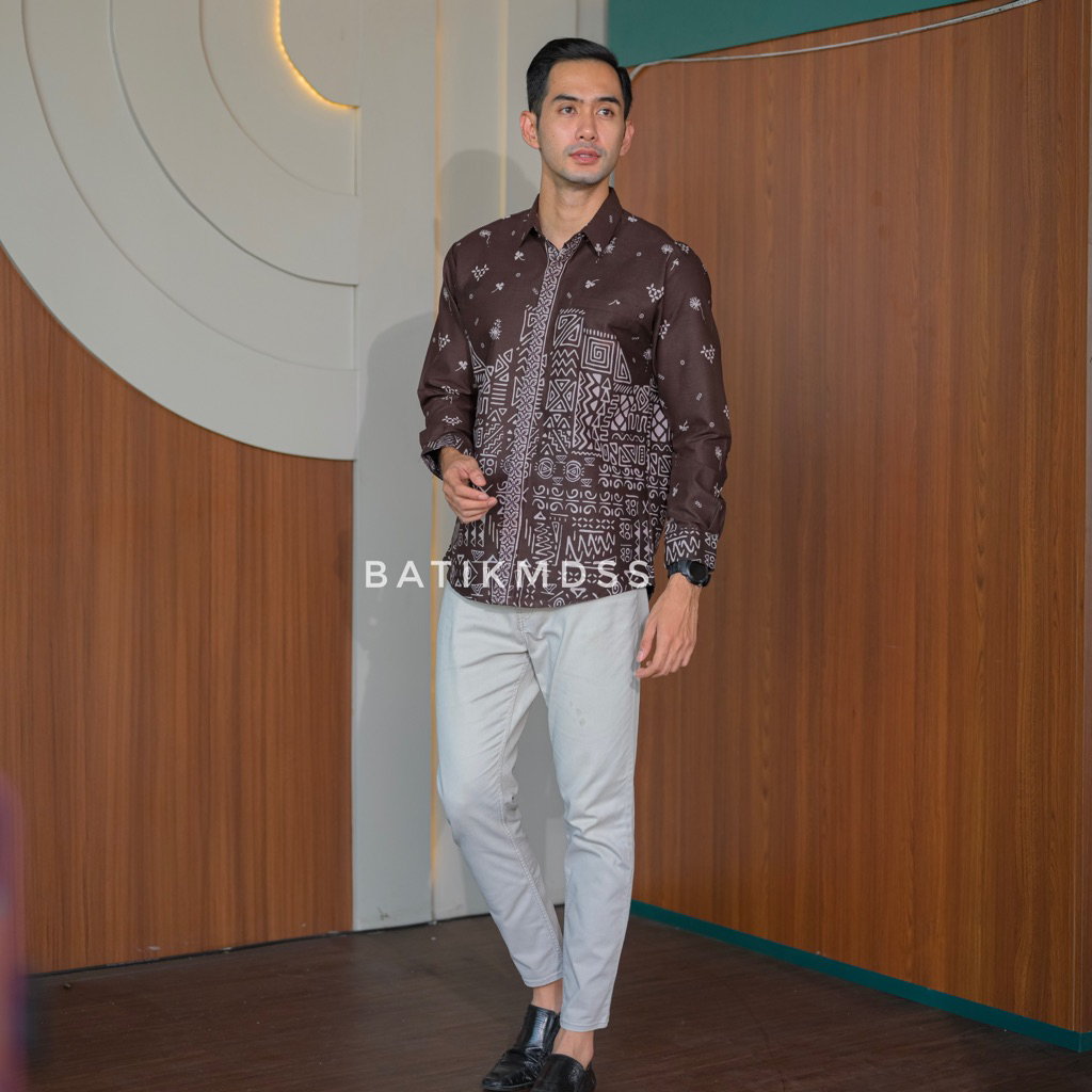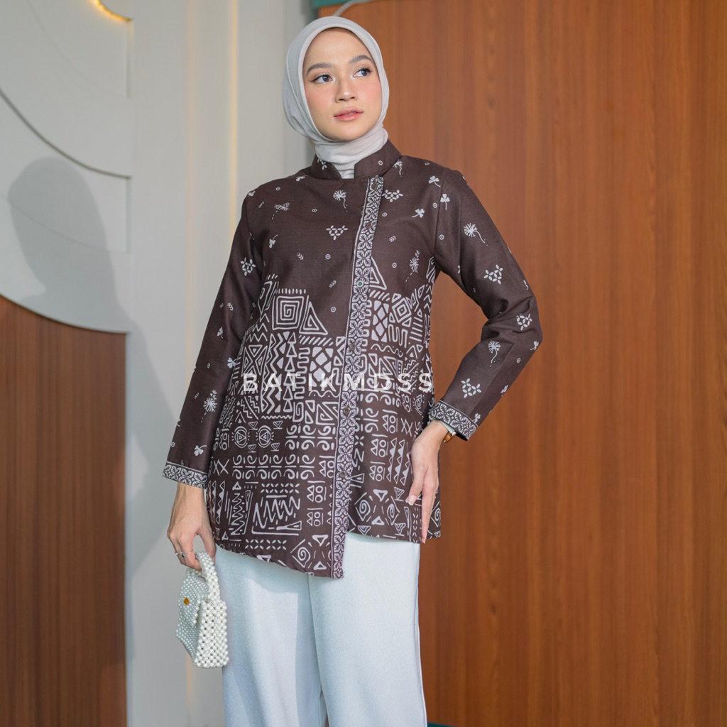 Atasan Batik Couple Pria Wanita Blouse Dan Kemeja Ekslusive Lapis Trikot “Layla Coklat Mahogani”