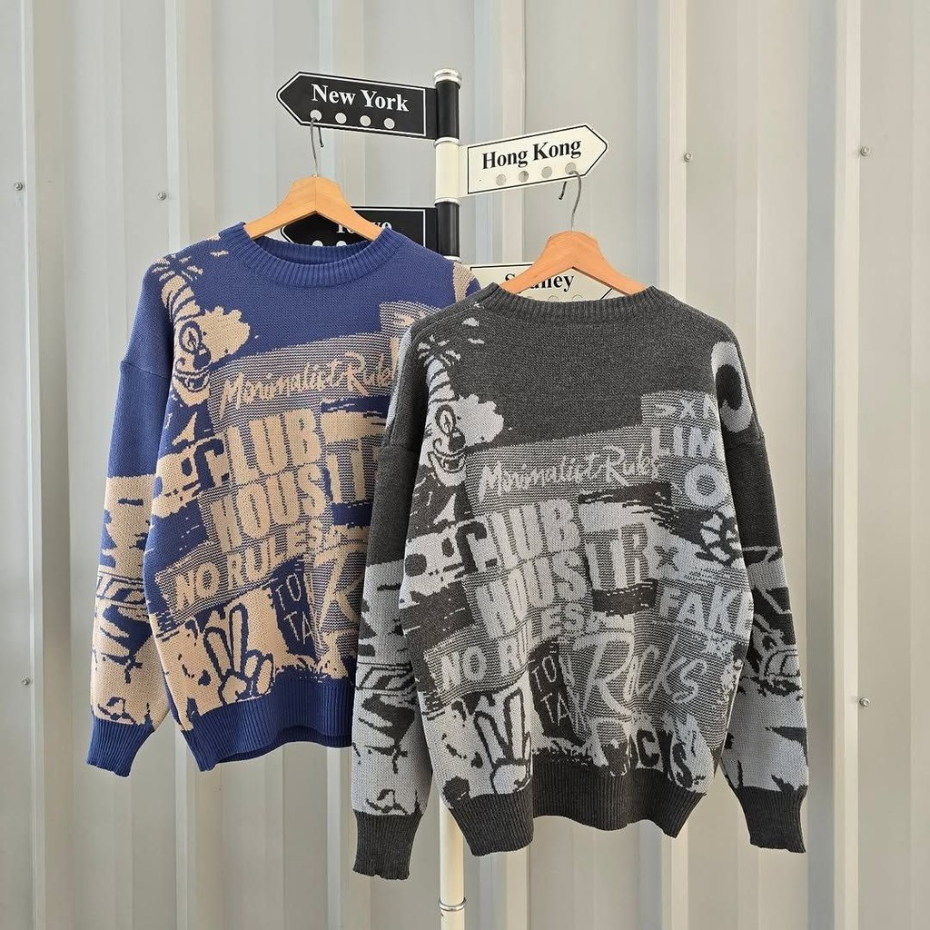 Arlina Urban Sweater | Sweater Rajut Wanita Motif Streetwear | Knit Pullover Korean Style