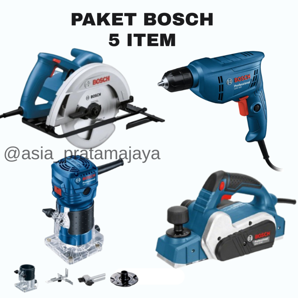 NEW PROMO Paket Tukang 4 item - BOSCH lengkap Mesin Profil KAYU + Mesin Serut kayu + Mesin Circular Saw + Mesin BOR 10MM + mesin gerinda 4 inch ORIGINAL