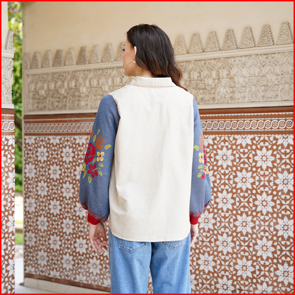 Nona Milla Top Long Sleeve Ecru - Atasan Wanita