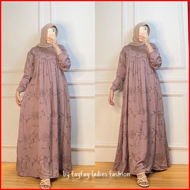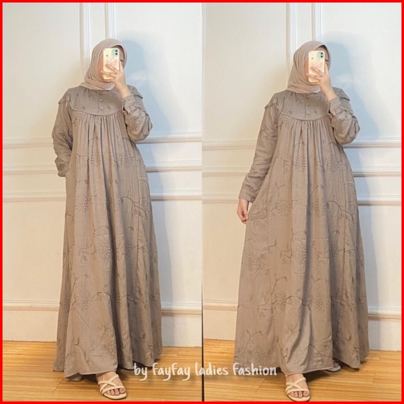 Fay Fay Amanda Baju Gamis Maxi Dress Muslim Polo Linen Full Bordir Premium High Quality Kancing Depan