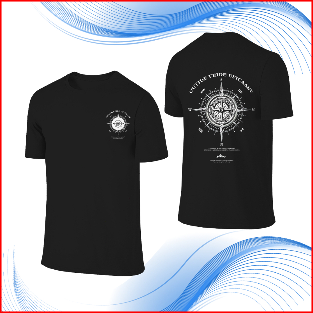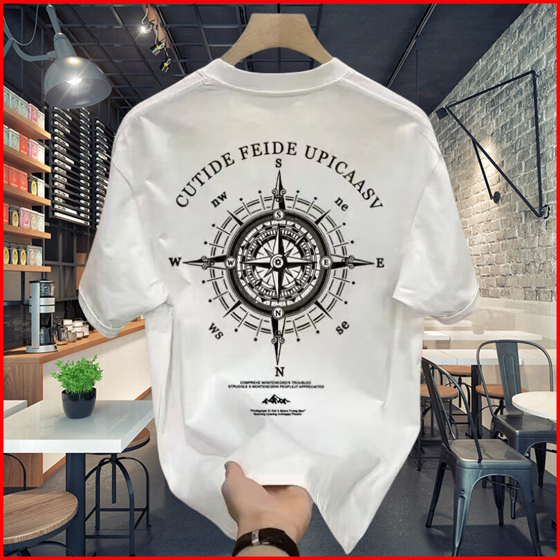 Outlets Chrone Heart Compass Kaos Black White D 24s Fit T Shirt Pria Short Sleeve