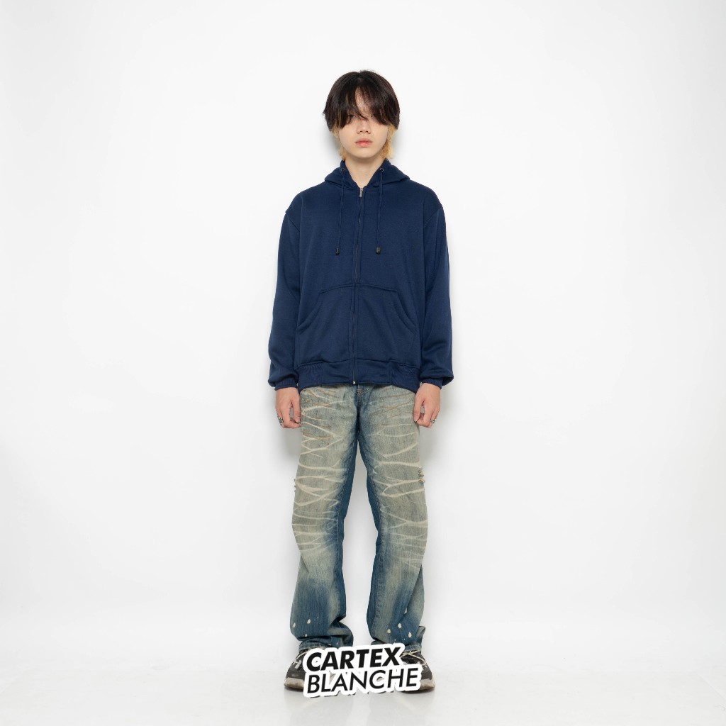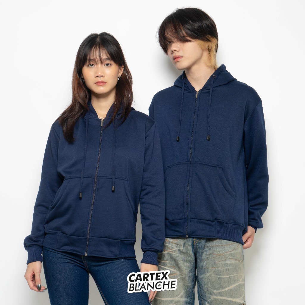 CARTEXBLANCHE - Navy Polos Jaket Hoodie Zipper Unisex Pria - Wanita Size M - XXL