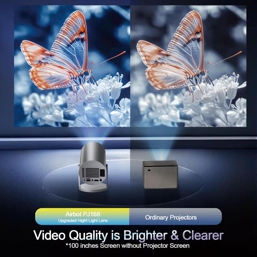 Airbot Multimedia Projector PJ168 Wireless Mini Projector Portable HD 1080P 4K Support Gaming Ceiling Projector
