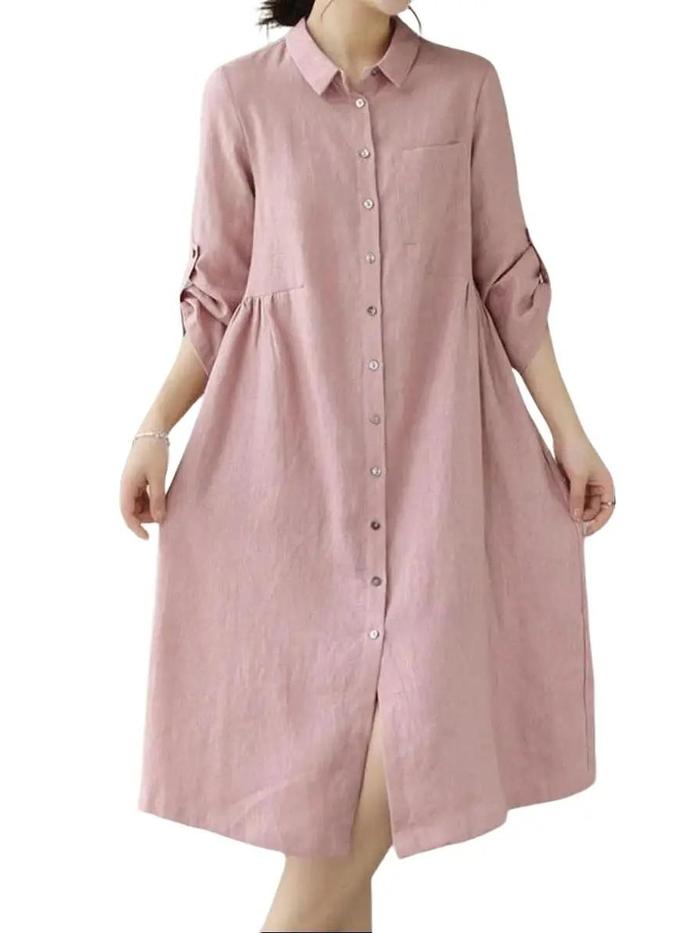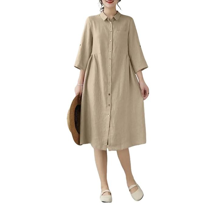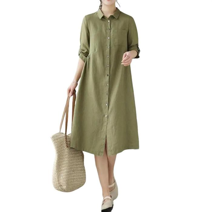 Baju Atasan Wanita - Alena Tunik - Tunik Korean Style - Tunik Linen Casual - Tunik Wanita Polos Dress Panjang Simple Mid
