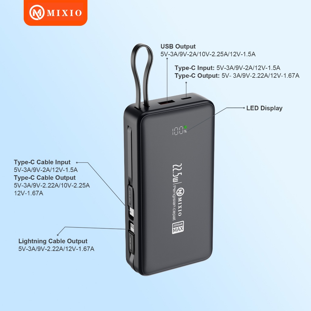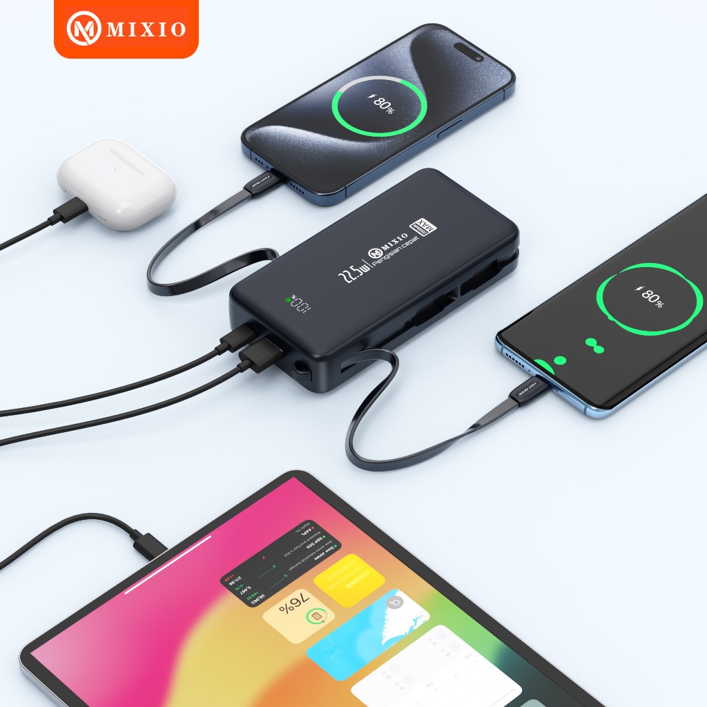 Mixio Mp-10 20000Mah Powerbank 22.5W With Kabel Fast Charging Lightning & Type C For Iphone/Android