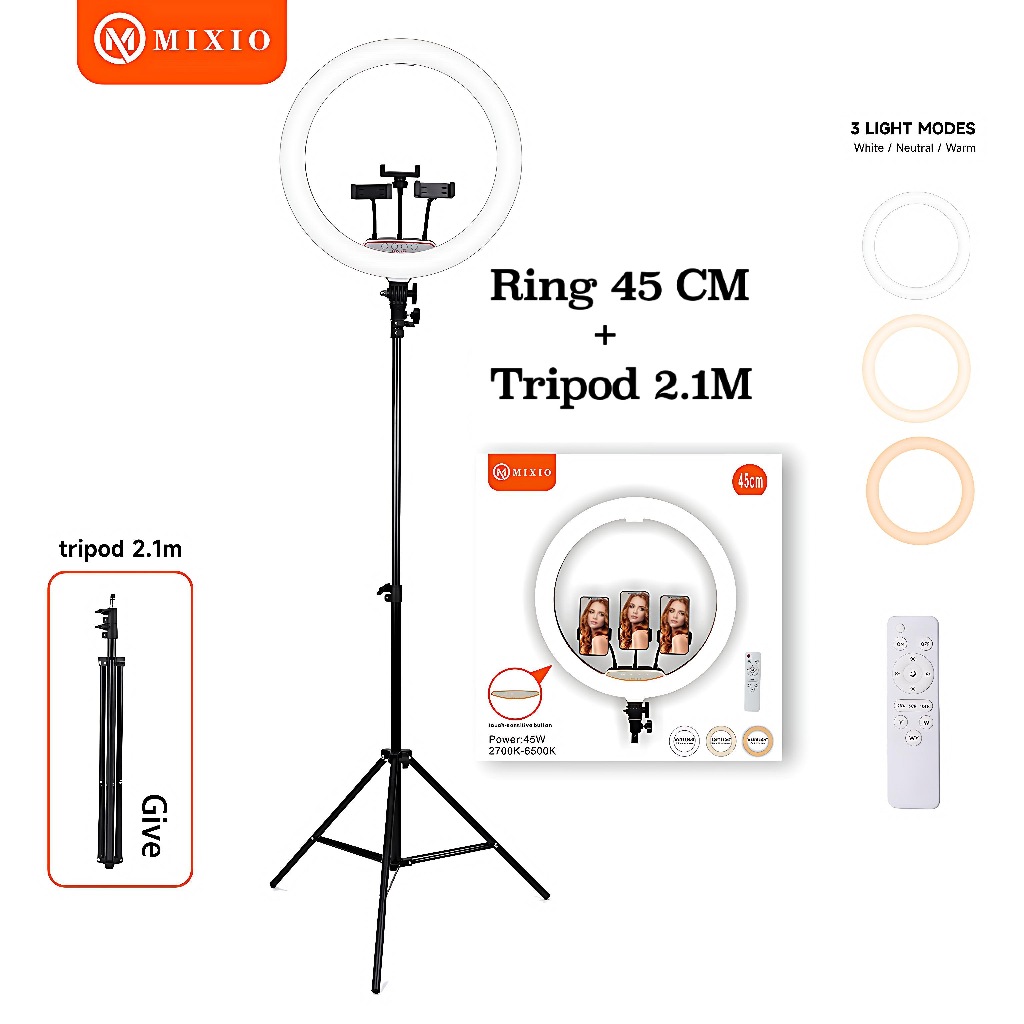 Mixio Ring Light 45Cm + Light Stand Tripod 2M With 3 Holder Hp & Remot