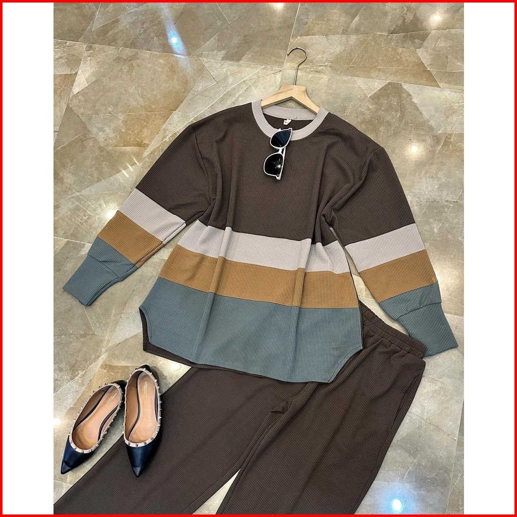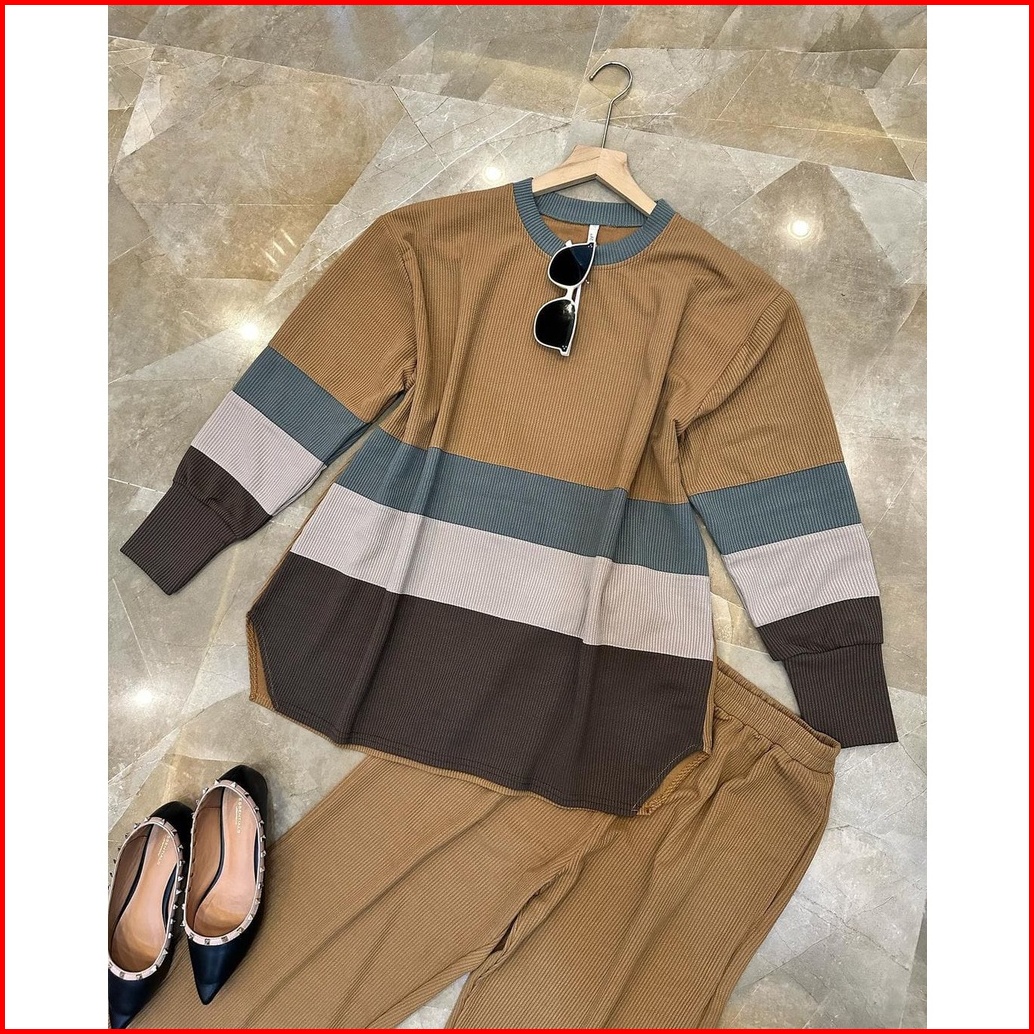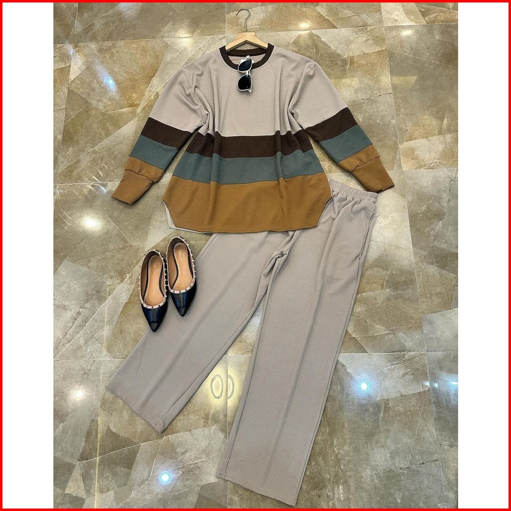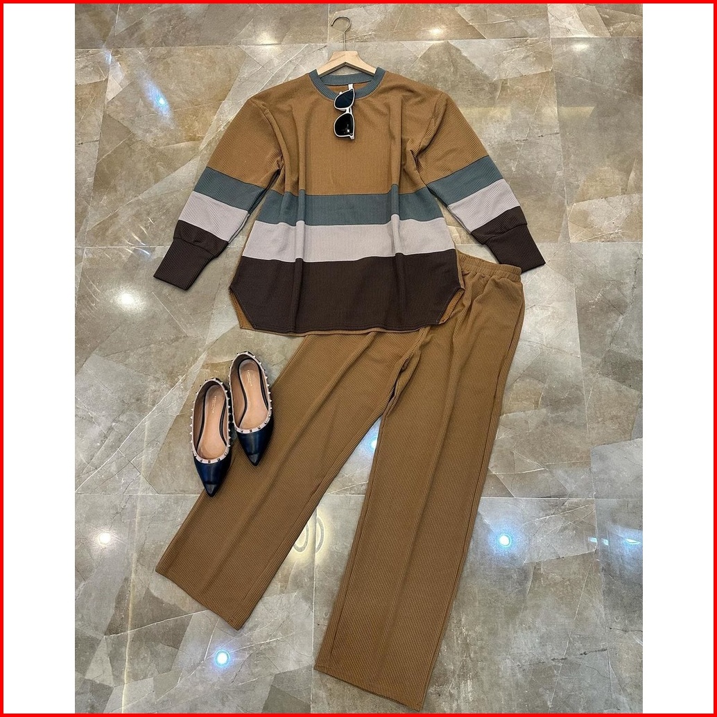 - Salsa Set Setelan Celana Wanita Muslim Matt Caramell Knit Polos Basic Premium All Size Fit To Xl Besar Casual Daily