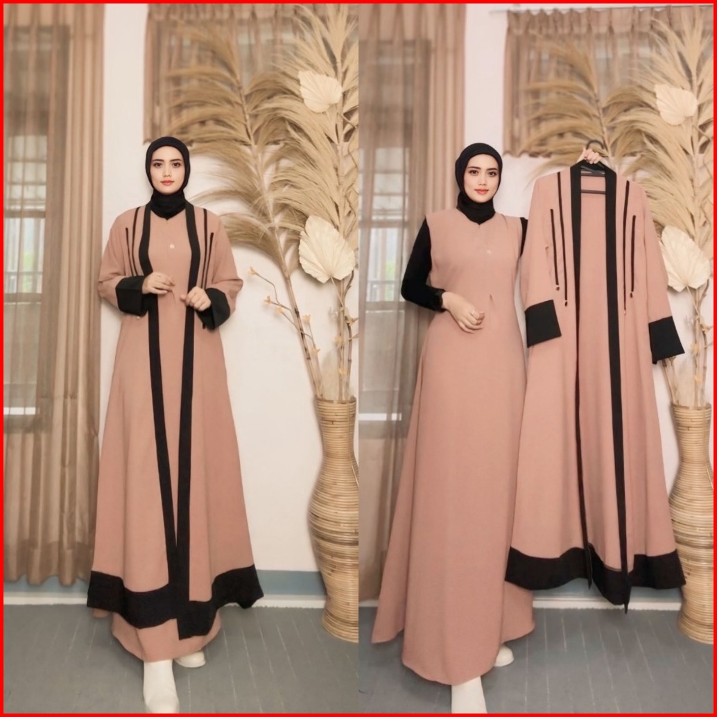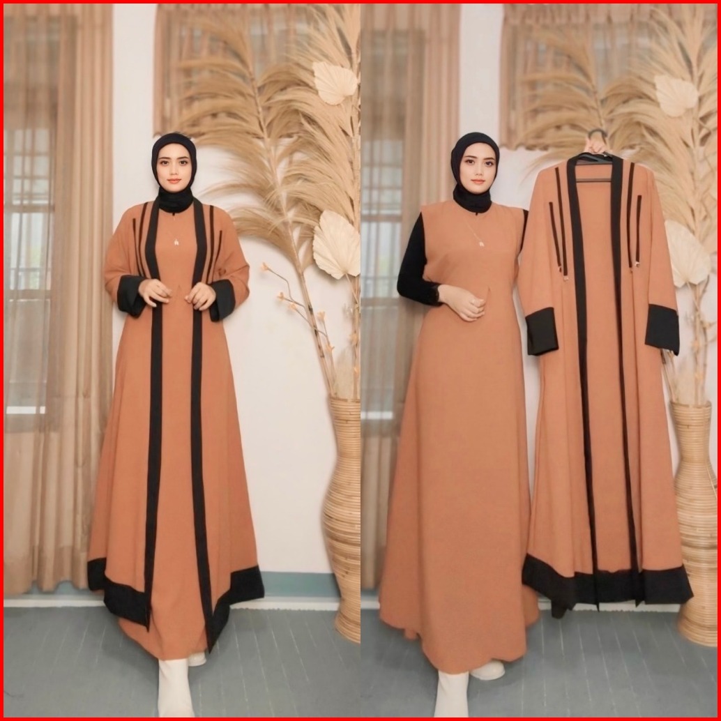 Arumi Set Abaya Outer Dan Inner Premium Muslim Gamis Wanita Lebaran Dewasa Remaja Lembut Basic Turki