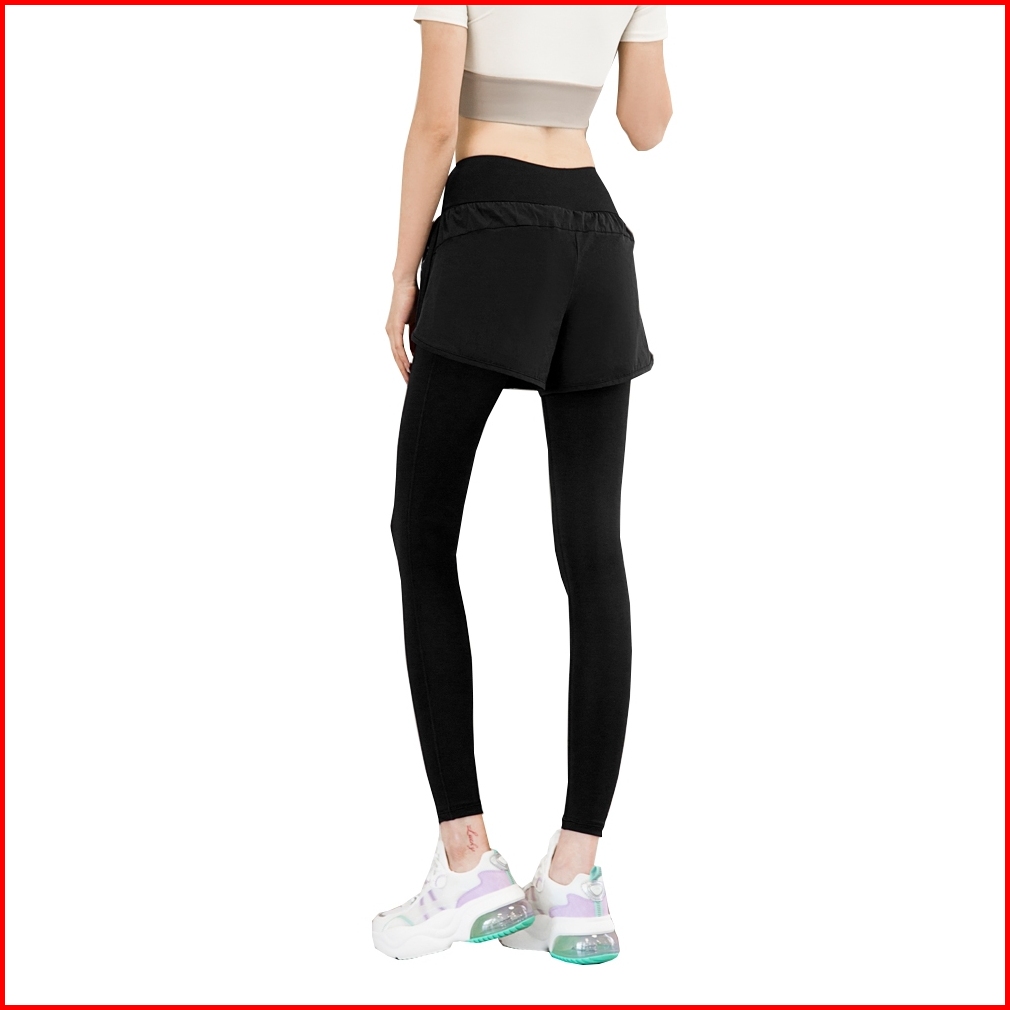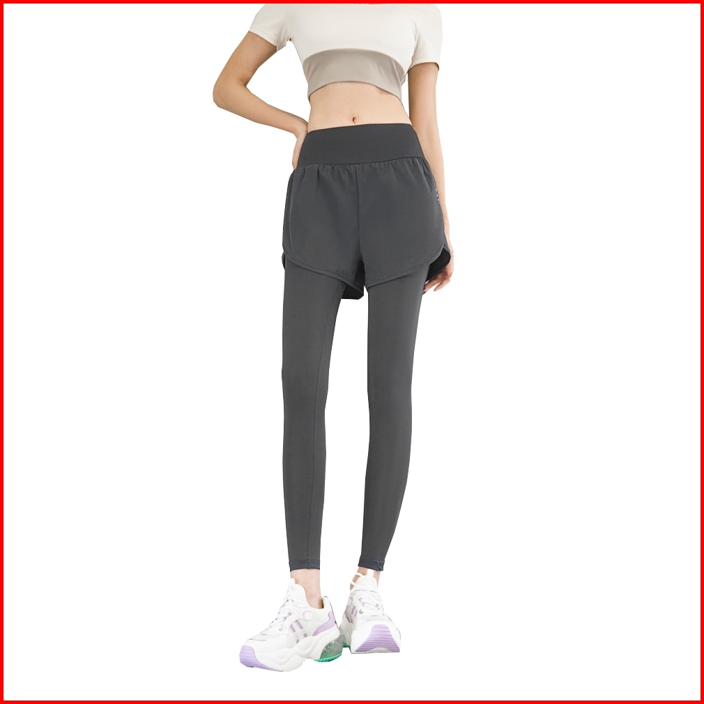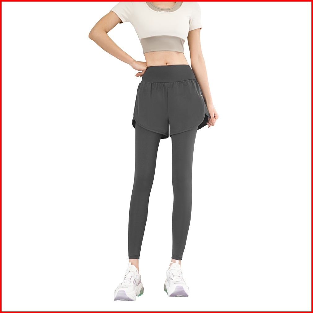 Tonion Celana 2 In 1 Olahraga Legging Wanita Pakaian High Waist Polos Bersepeda Yoga Running Sport Fitness