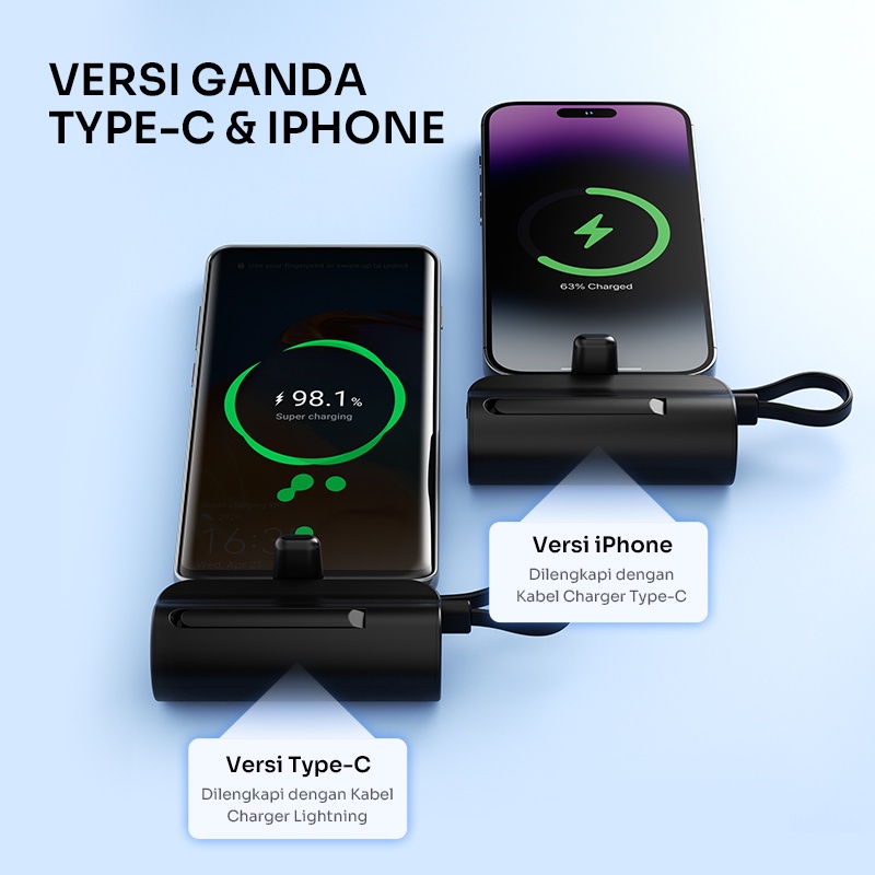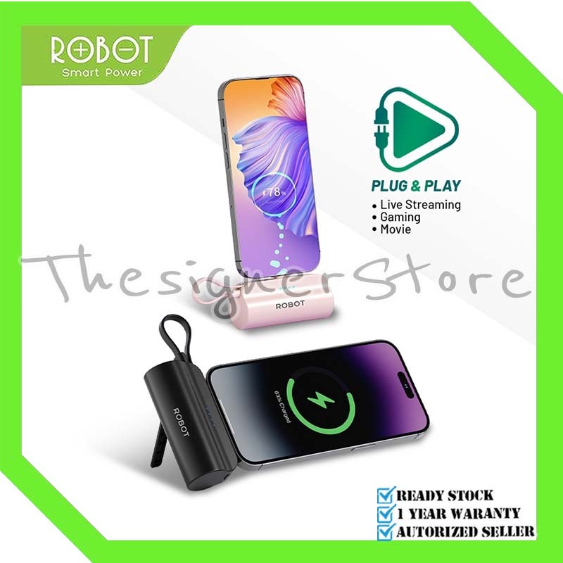 Mini Powerbank Robot 4500Mah Port Type-C Lightning Travel Size Rp051L Rp051C - Garansi Resmi 1 Tahun