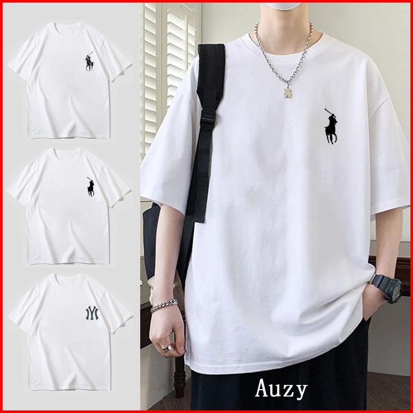 Auzy Amerika Merek Mode Kesederhanaan Pencetakan Kaos Pria Wanita Atasan Lengan Pendek T-shirt Skena Baju Oversize T Shi