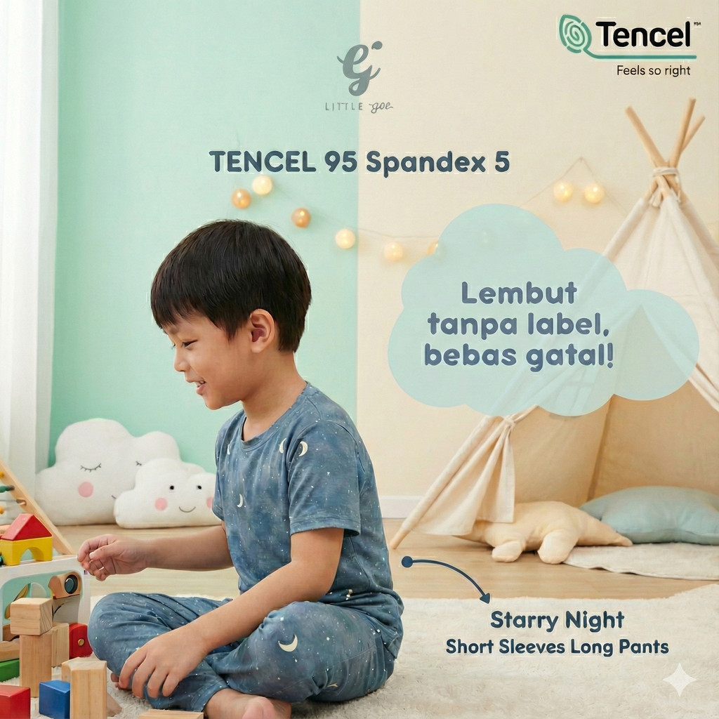 Little Gee Set Baju Tidur Lengan Pendek Celana Panjang TENCEL Bayi 1 - 5 Tahun pria-wanita