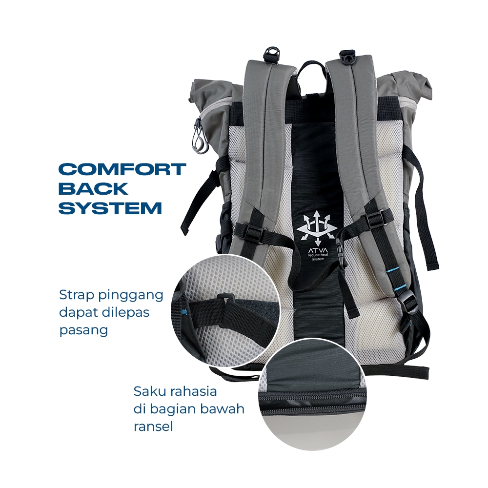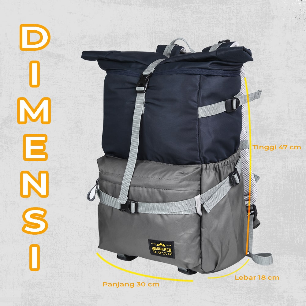 Atva Wanderer - Tas Backpack Pria Wanita Tas Ransel Outdoor Roll Top Waterproof Muat Laptop Up To 16 Inch Tas Cewek Cowo