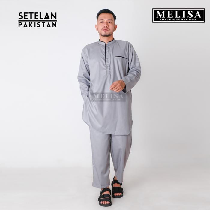 Baju Koko Pria Setelan Pakistan Dewasa Lengan Panjang Bahan Katun Toyobo Warna Abu Abu Dan Putih Hitam Size M L Xl Xxl X