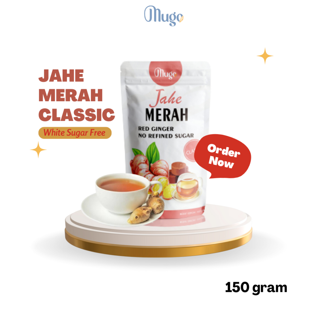 Mugo Jahe Merah Gula Aren 150 gram – White Sugar Free, Praktis Tanpa Ampas