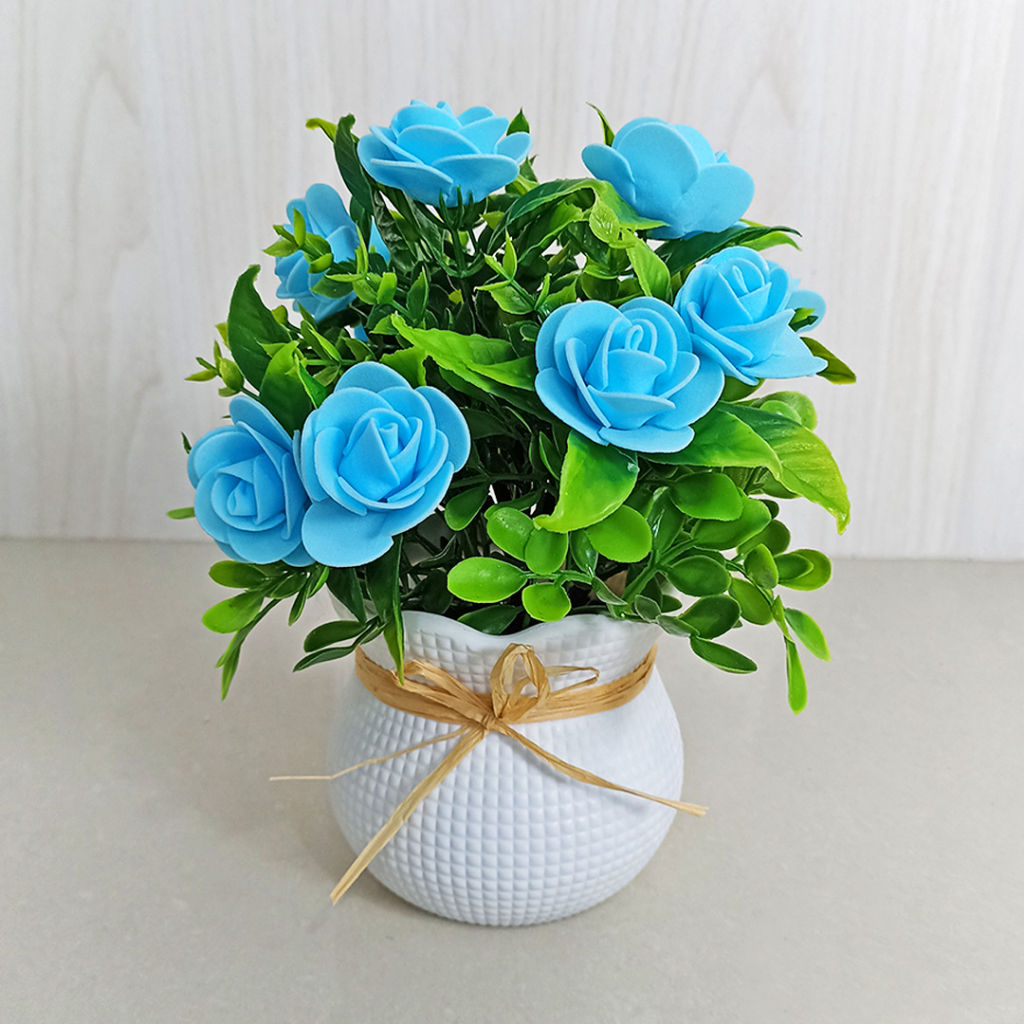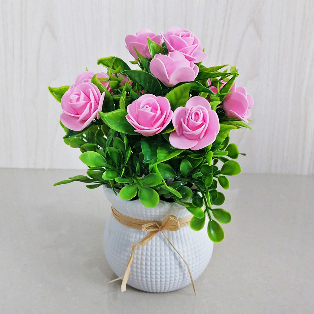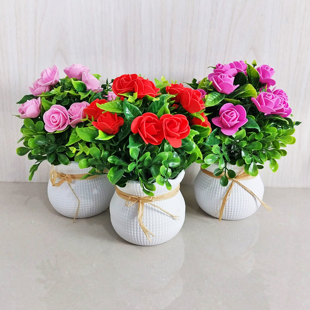 Bunga Mawar Hias Plastik Palsu Pot Ornamen Pajangan Dekorasi Ruangan Artificial Flower PBP164