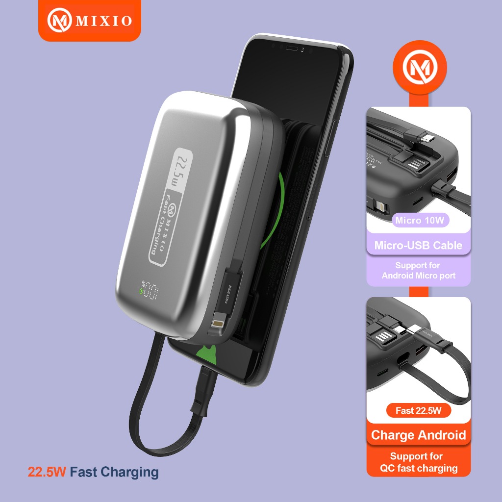 Mixio Mp-14 20000Mah Small Size Powerbank 22.5W With Kabel Fast Charging Lightning & Type C & Micro Usb For Iphone/Andro