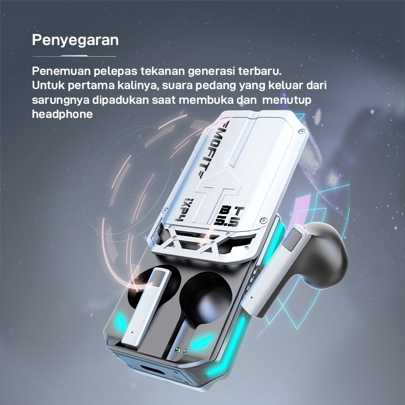Mofit Gm-Ms Tws Extra Bass Gaming All Metal Bluetooth Headset 5.3 With Rail Slide Charging Case
