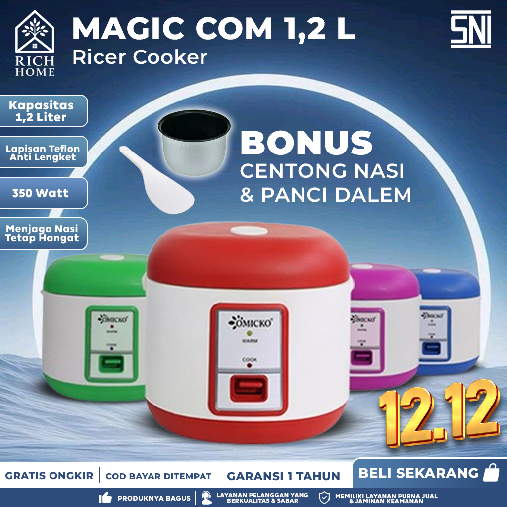 Magic Com OMICKO 1,2L – Rice Cooker Mini Teflon Anti Lengket 350 Watt + Bonus Wadah