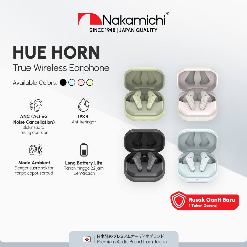 Nakamichi My Music Hue Horn Anc Tws Earphone Full Bass Ipx4 Anti Keringat Bluetooth Mic