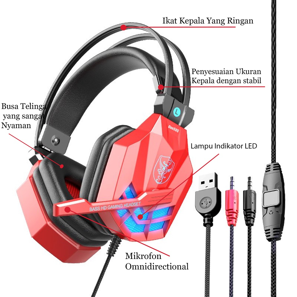 Onesos Headset Gaming Led / Aerphone Game / Headfree / Earphone Stereo / Headphone Gamer Kabel On Ear With Microphone Fo