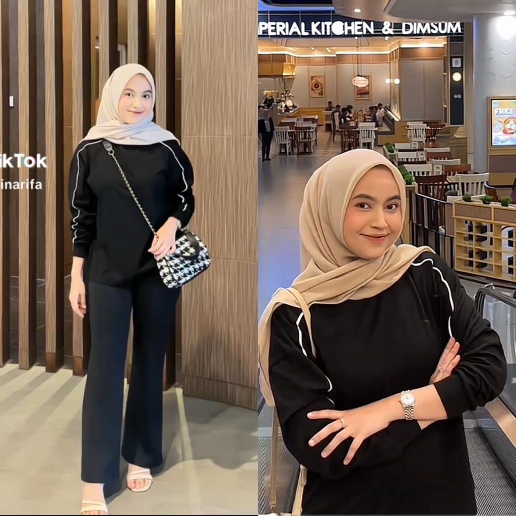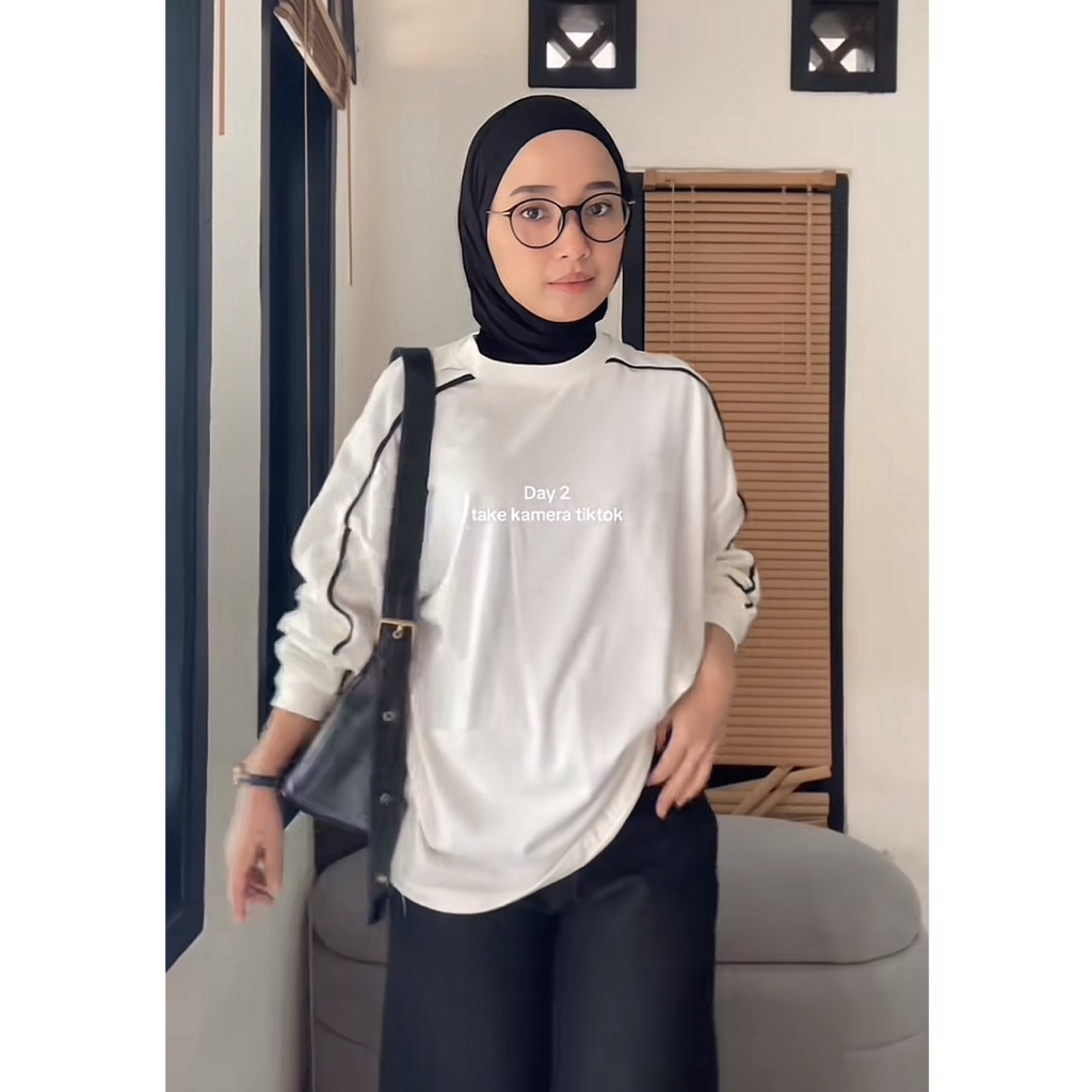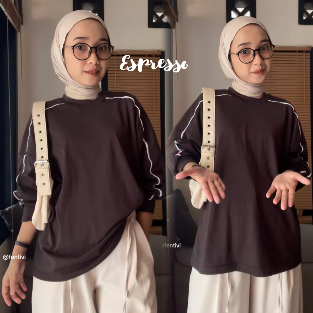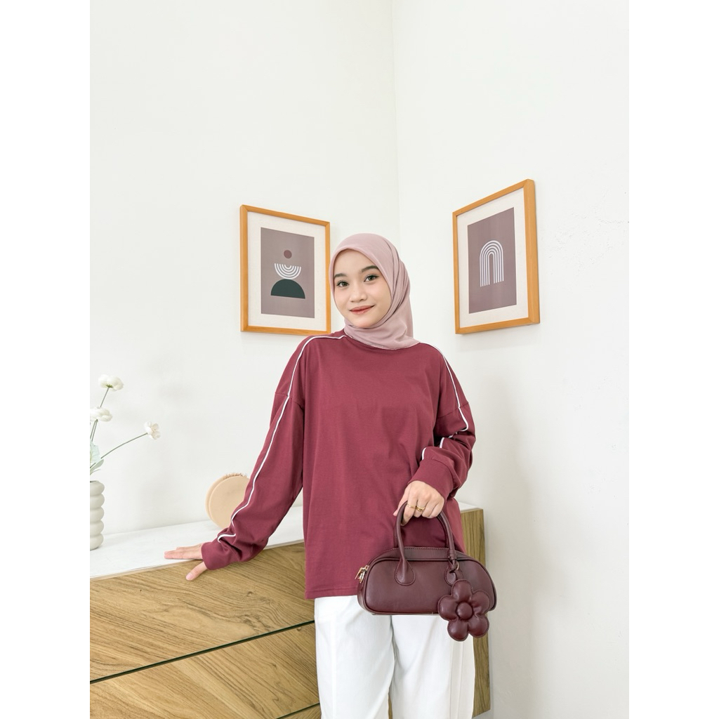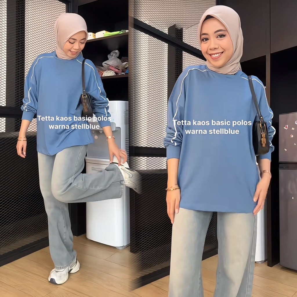 Tetta Kaos Oversized Lengan Panjang Sweatshirt Wanita Casual Combed Model List Polos