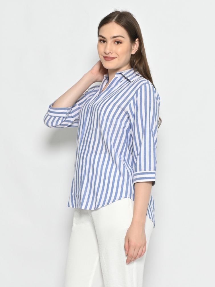 Blouse Wanita Casual 0175 Katun Yarndyed Motif Salur Lengan Siku 3/4