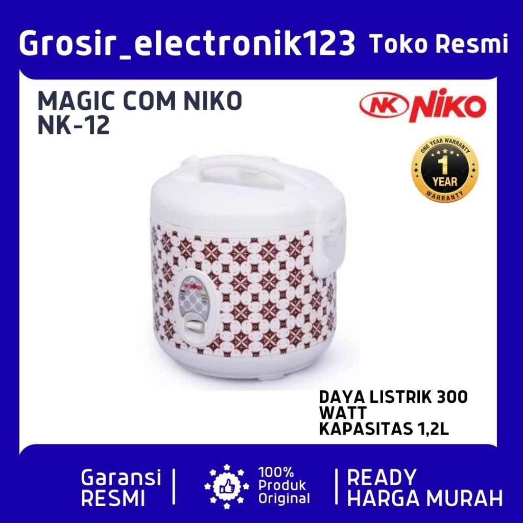 MAGIC COM 1.2LT NIKO RC12 / RICE COOKER / PENANAK NASI 1.2 LITER