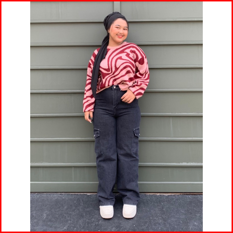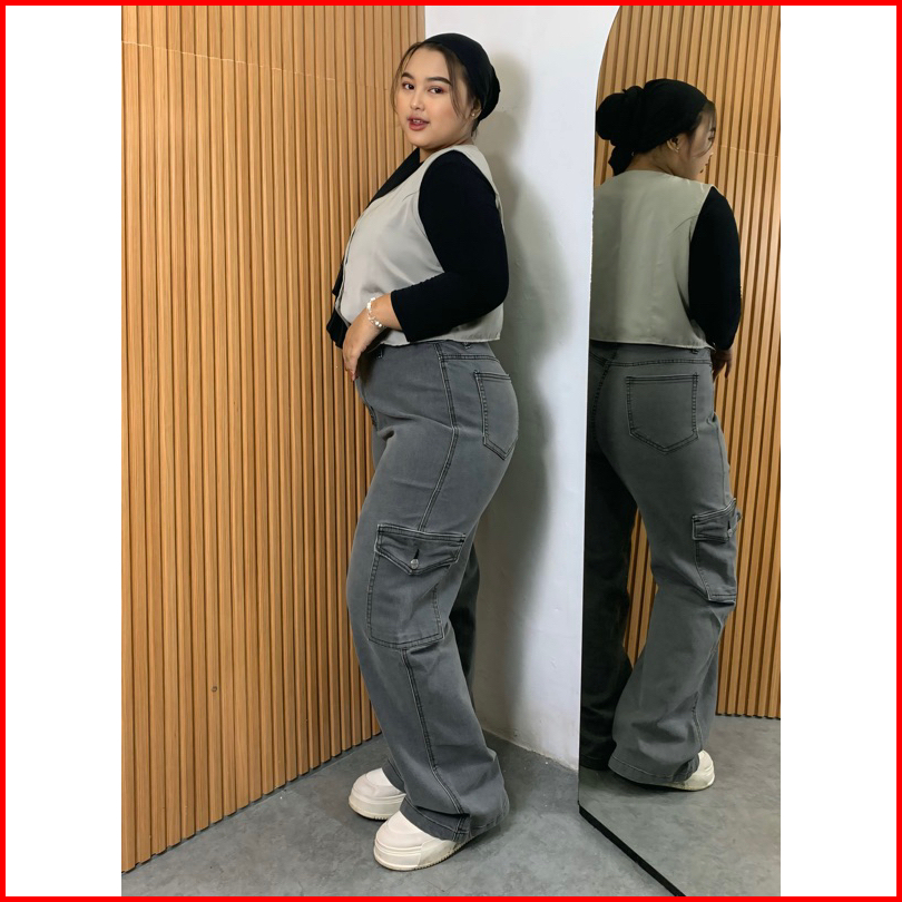 Nareshstore Everly Strechy Cargo Jeans Highwaist Extra Bigsize Jumbo