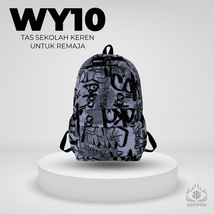 Joowon Tas Ransel Motif Abstrak Model Trendi Unisex Tas Sekolah - Wy10 Backpack Travel - Putih